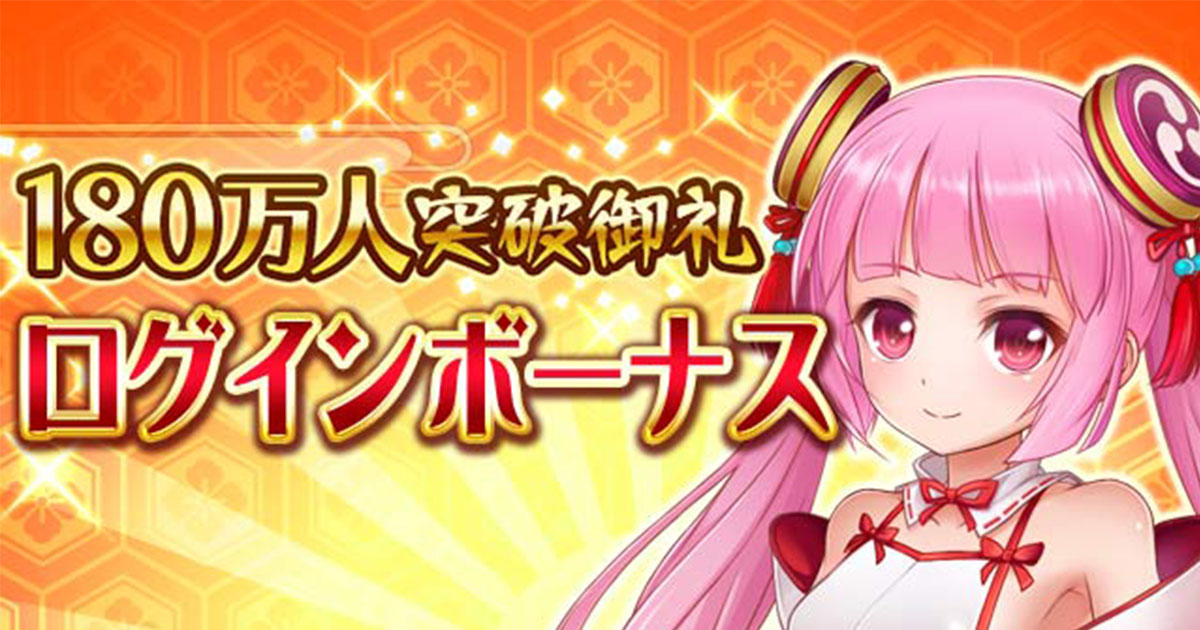 『戦乱プリンセス(戦プリ)』にて、「180万人突破御礼キャンペーン」が開催されています。