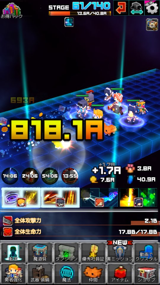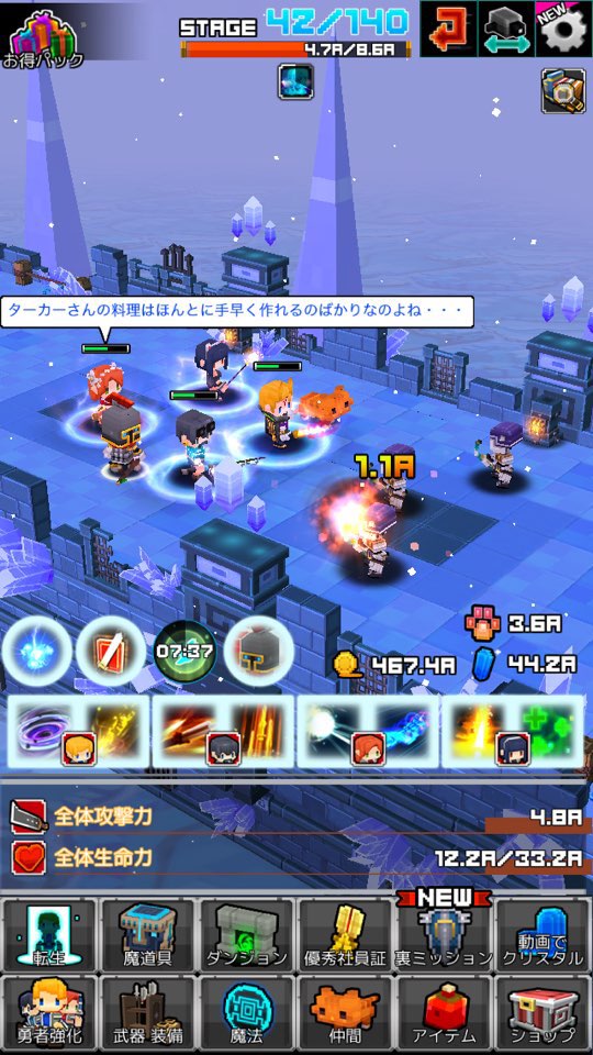 ですが、そこは「中年騎士ヤスヒロ」のポラリスエックス。ゲーム進行はいたってシンプルに、「放置&強化(製作)&タップ」 がメインです。