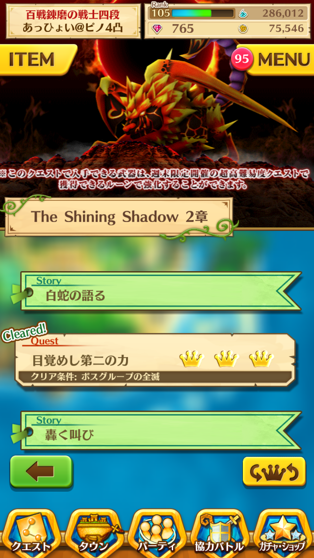 まずは<第2章>と書かれたクエストをクリアしましょう!