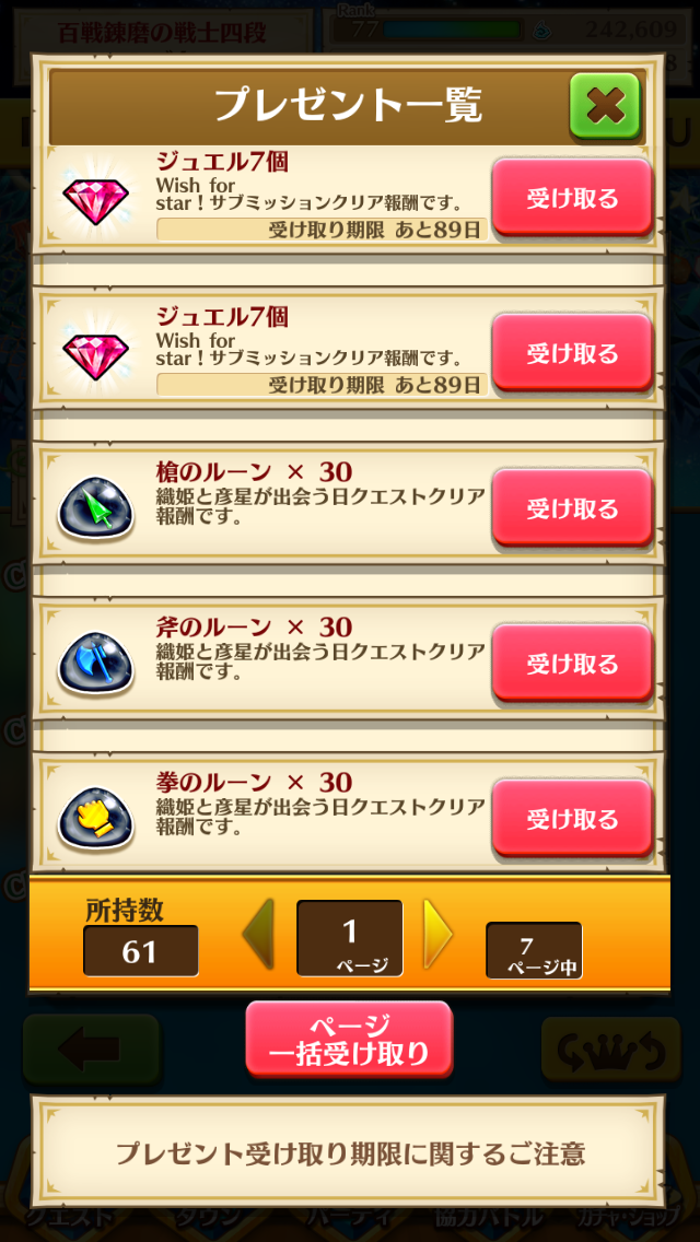 1ストーリー3クエストですが、3つのクエスト全てがいわゆる「プレゼントクエスト」になります。