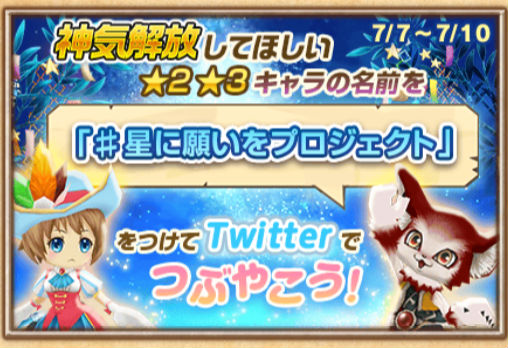 「神気開放」してほしい★2★3のキャラの名前を、Twitterでハッシュタグ「#星に願いをプロジェクト」をつけてつぶやこう!