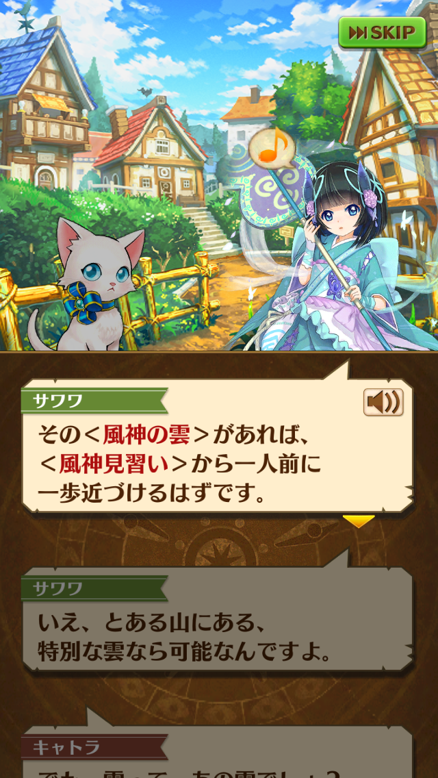 今回は、サワワが立派な風神を目指すために、特別な「乗れる雲」を求めて山に入るお話。主役がサワワなのでサブミッションに「ウォーリアーのみのパーティーでクリア」があります。