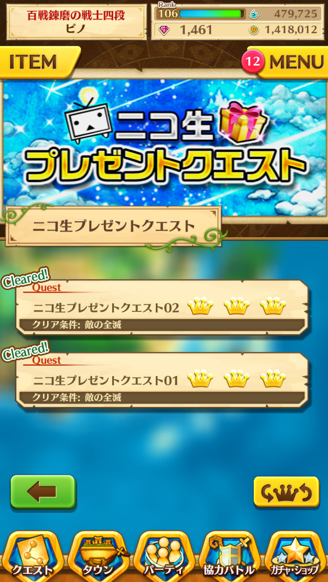 1周年記念で行われた公式ニコニコ生放送のプレゼントクエストが開催中です。