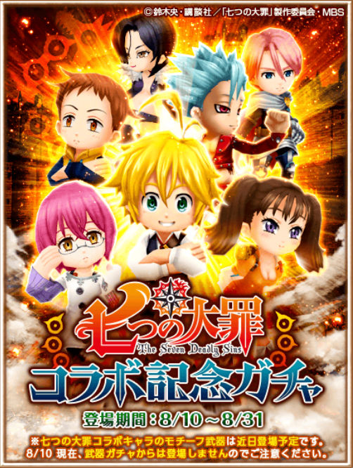 アニメ「七つの大罪」とのコラボイベントとして、「七つの大罪」に登場する7人がコラボ記念ガチャに登場しています!
