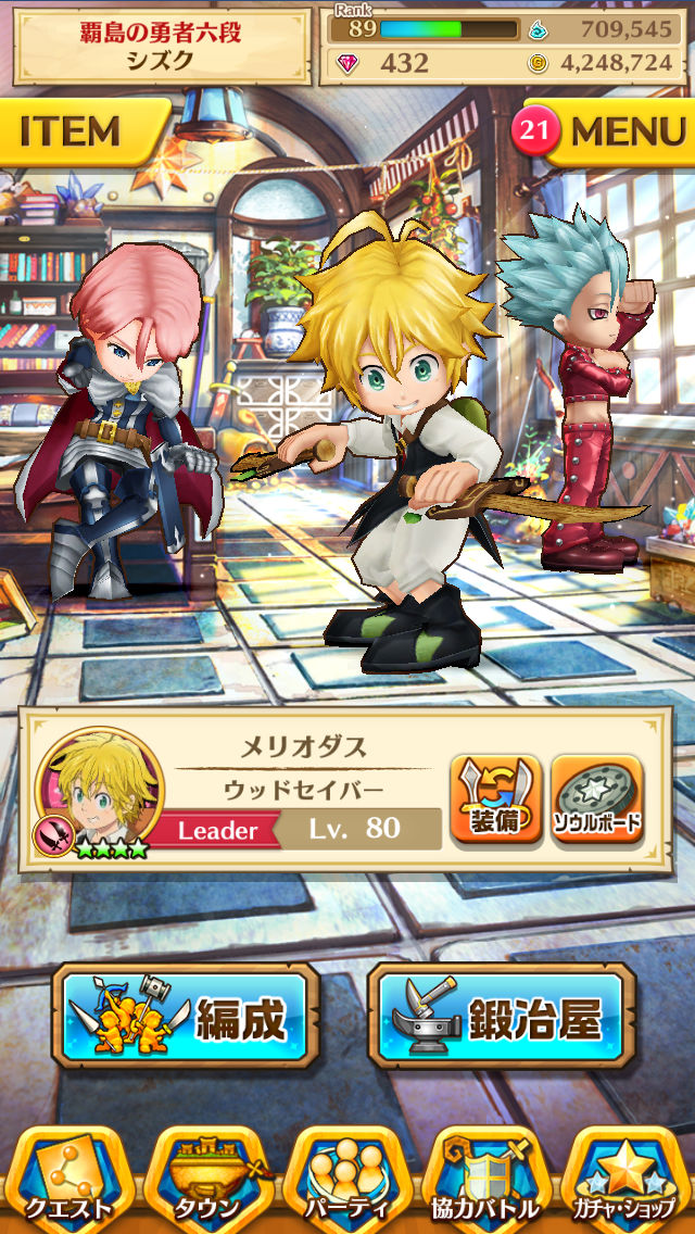 一番の目的であった、「七つの大罪」の主人公「メリオダス」をゲット!虹のスタールーンが2個出てしまったのは少し悔しいですが...十分満足できる結果だと思います!