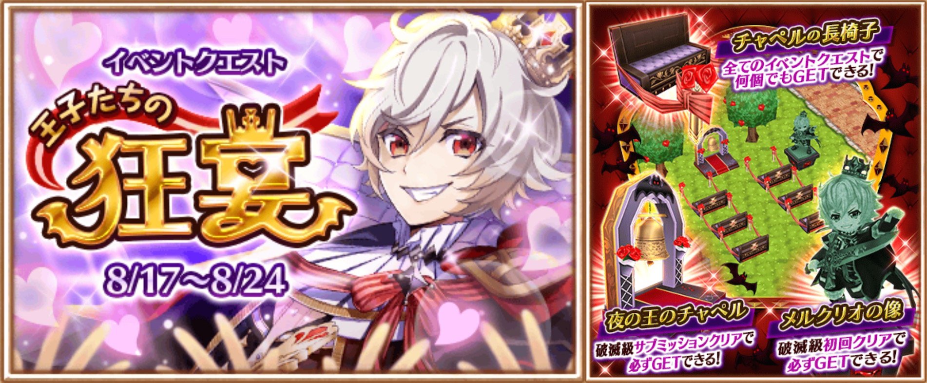 「王子たちの狂宴」が開催中!イベントクエストに挑戦して、タウンのデコレーションやサブミッション報酬を手に入れよう!