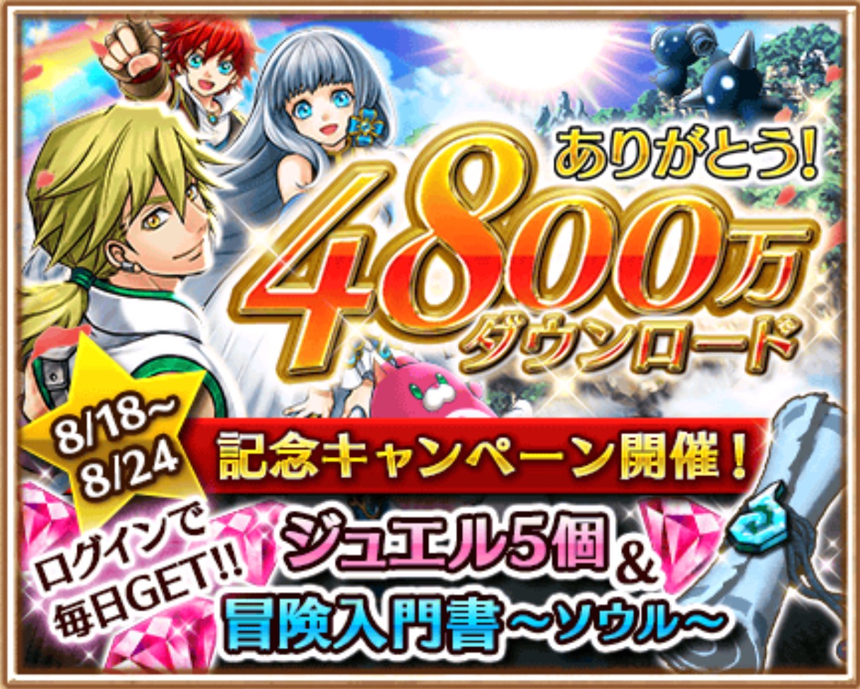 毎日、「ジュエル5個」と「冒険入門書~ルーン〜」をプレゼント!