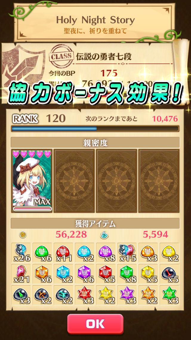 本イベントは、★3、★6、★10の3つのクエストで構成され、「Holy Night Story」本編で入手できる限定キャラの強化や友情覚醒、限定武器の進化に必要なイベントルーン「共感のルーン」や、限定アクセサリーが手に入るぞ!