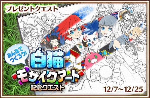 「みんなでつくろう!白猫モザイクアート」開始を記念して、プレゼントクエストが開催中!