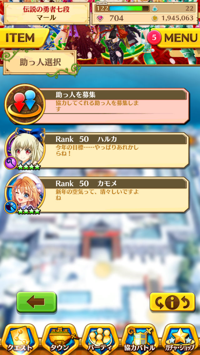 曜日クエストと協力バトルの報酬がリセットされたぞ!お正月の限定ガチャに備えて、クリア報酬ジュエルを貯めておこう!