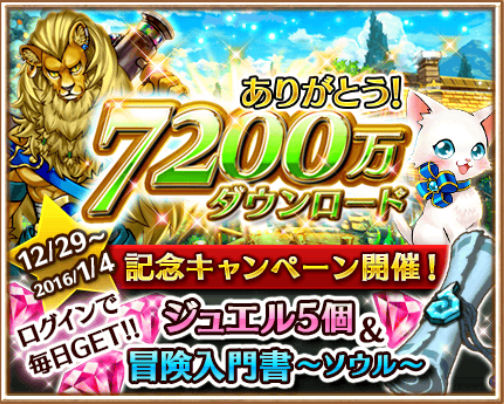 『白猫プロジェクト』のダウンロード数が7200万を突破し、記念のログインキャンペーンが実施中。