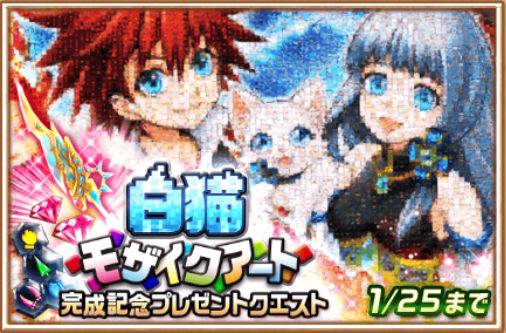 12月初旬からSNSにて画像を募集し、制作が進められていた「白猫モザイクアート」が遂に完成し、みんなの画像投稿数に応じた豪華プレゼントが受け取れる、「完成記念プレゼントクエスト」が開催中!
