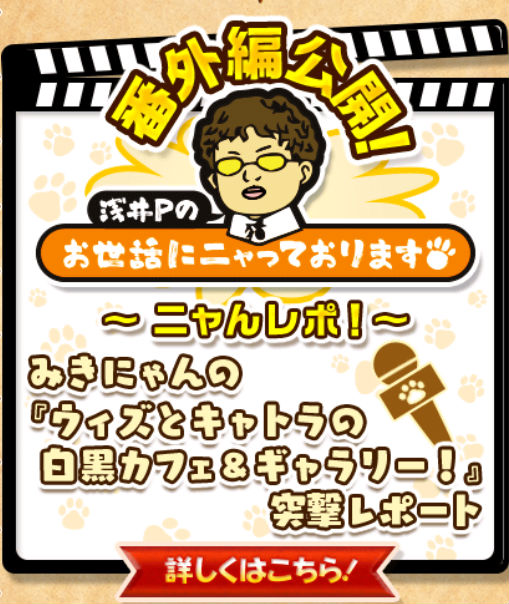 今回は、"みきにゃんの「ウィズとキャトラの白黒カフェ&ギャラリー!」突撃レポート」"ということで、渋谷パルコ館内の2箇所にて開催中のリアルイベント「白黒カフェ」「白黒ギャラリー」について紹介されているぞ!