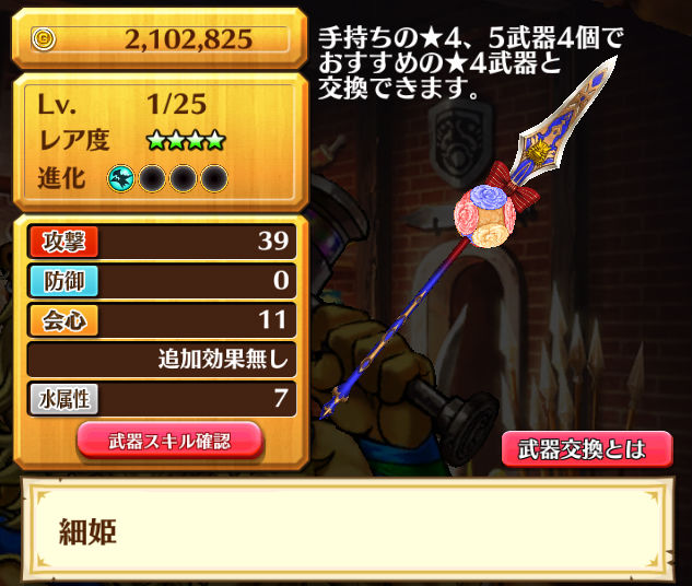 特に「細姫」は、武器交換で入手する価値があるほどの一品となっているので、交換を考えている人は、忘れないようご注意を!