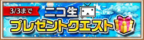 2/22(月)21:00より放送された公式ニコ生「しろニャま!#13」放送内で決定したプレゼントがもらえるプレゼントクエストが開催。
