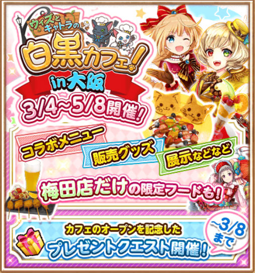 「ウィズとキャトラの白黒カフェ!in大阪」のオープンを記念し、プレゼントクエストが開催中。