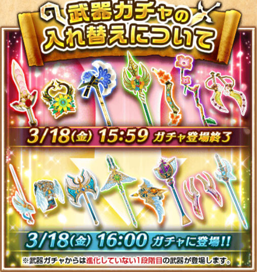 新武器入れ替えは3/18(金)16:00!花武器の登場終了に注意!