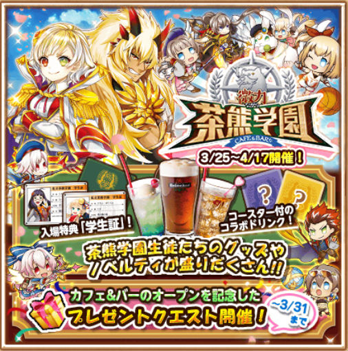これを記念し、開校直前イベントクエスト「茶熊学園新学期、始動!」が開催中です!
