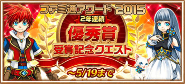 これを記念して、プレゼントクエスト「ファミ通アワード2015受賞記念クエスト」が開催中です。