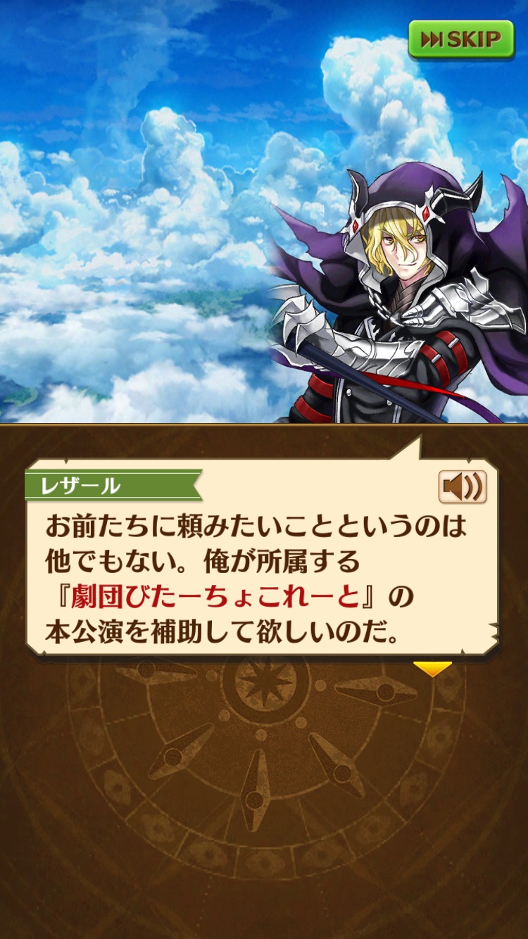 レザールが所属する<劇団びたーちょこれーと>の本公演を補助して欲しいと依頼を受ける主人公一行。
