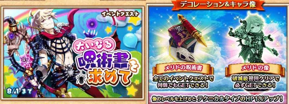 『白猫プロジェクト』にて、第20回フォースターで登場した、メリドのイベントクエスト「大いなる呪術書を求めて」が開催中。