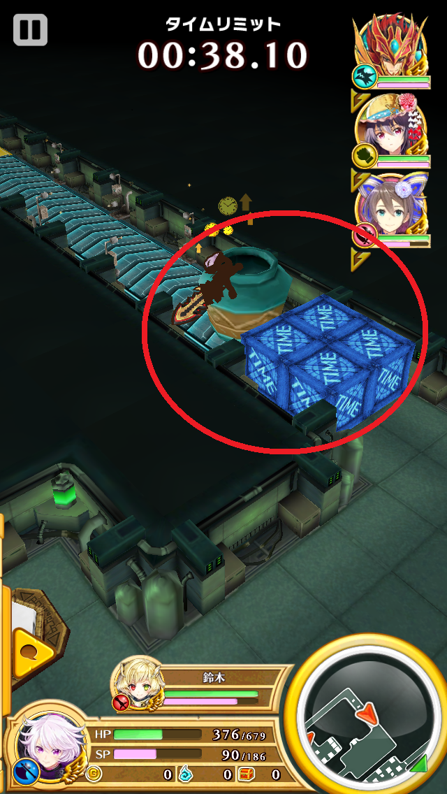 ベルトコンベアの流れに逆らいながら破壊すると時間がかかるので、予め範囲攻撃で破壊しておけると良い。