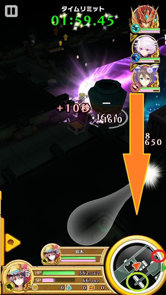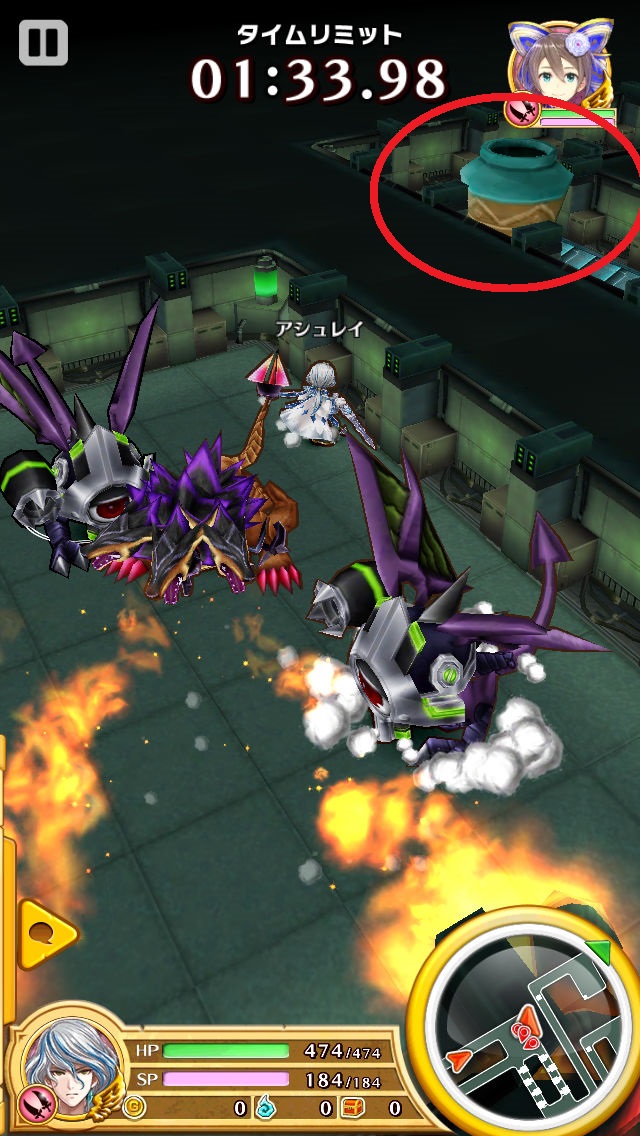 最初に立ちふさがる壷が非常に硬く、ここでSPを惜しむと非常に時間がかかってしまうので、アクションスキルを使用して全力で破壊しよう。