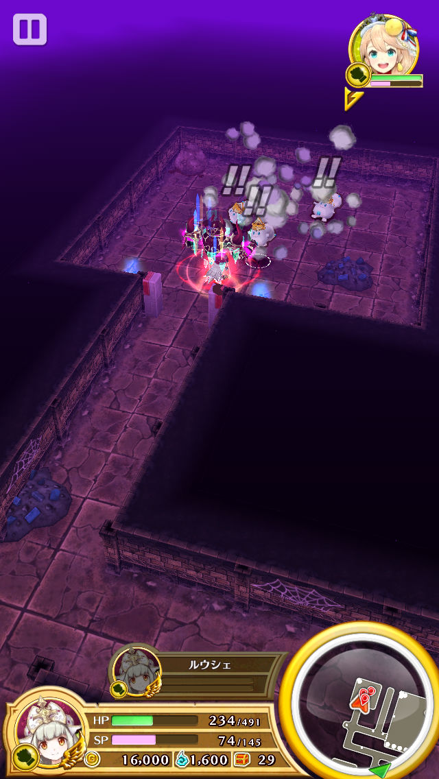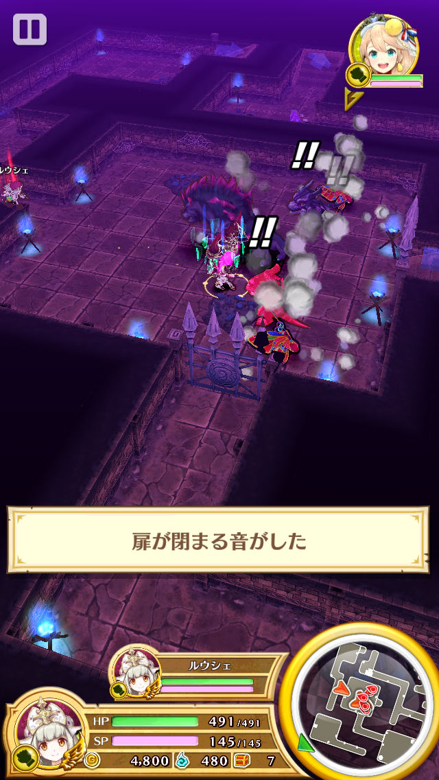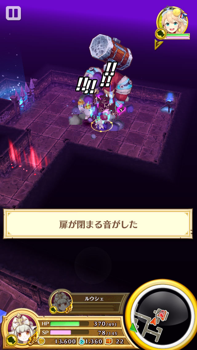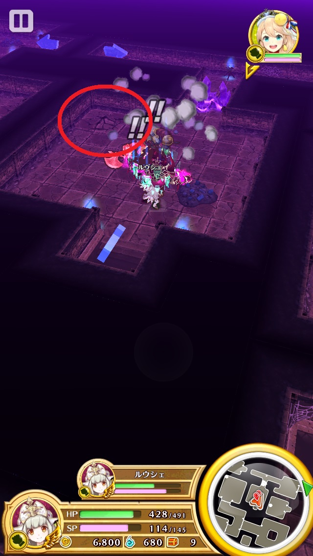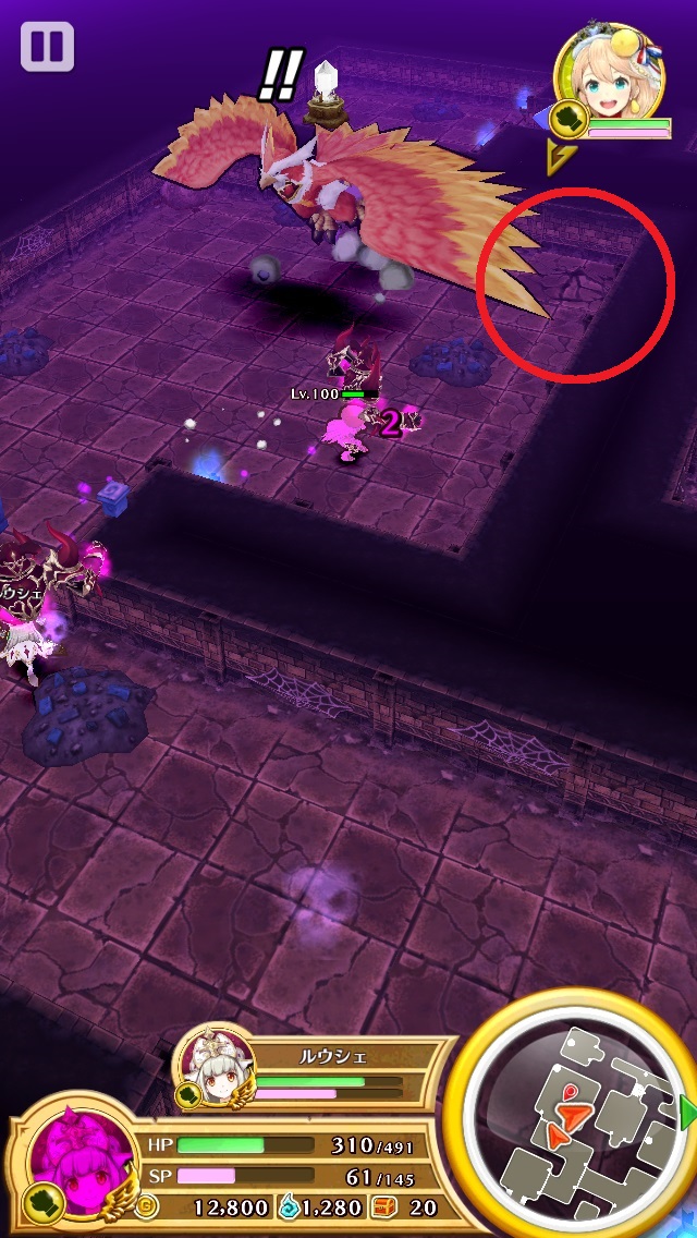 部屋が非常に狭く、「ウッホ」の回転攻撃をフリック回避のみで避け続けるのは困難なので、アクションスキルの無敵時間を利用して回避しよう。