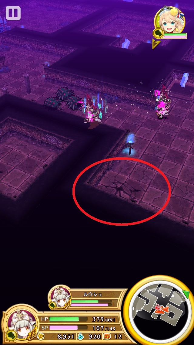 その後、左画像赤い丸の落とし穴に落ちて先に進もう。