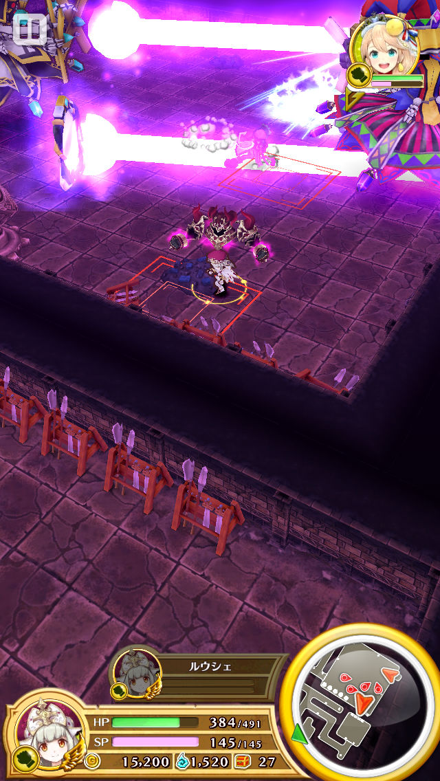 ただし、遠距離で放ってくる紫のビームの威力が非常に高く、一撃でやられてしまうこともあるので、ビームを溜めている紫の光が見えたら、スキルを使ってワープ行動を誘発しよう。