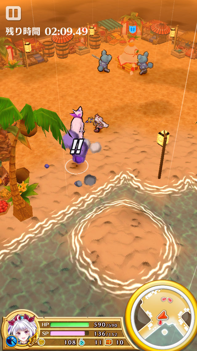 Quest1-1~1-3は、"中央に配置された鏡モチを、制限時間の間破壊されずに守り抜く"ことがクリア条件となる。