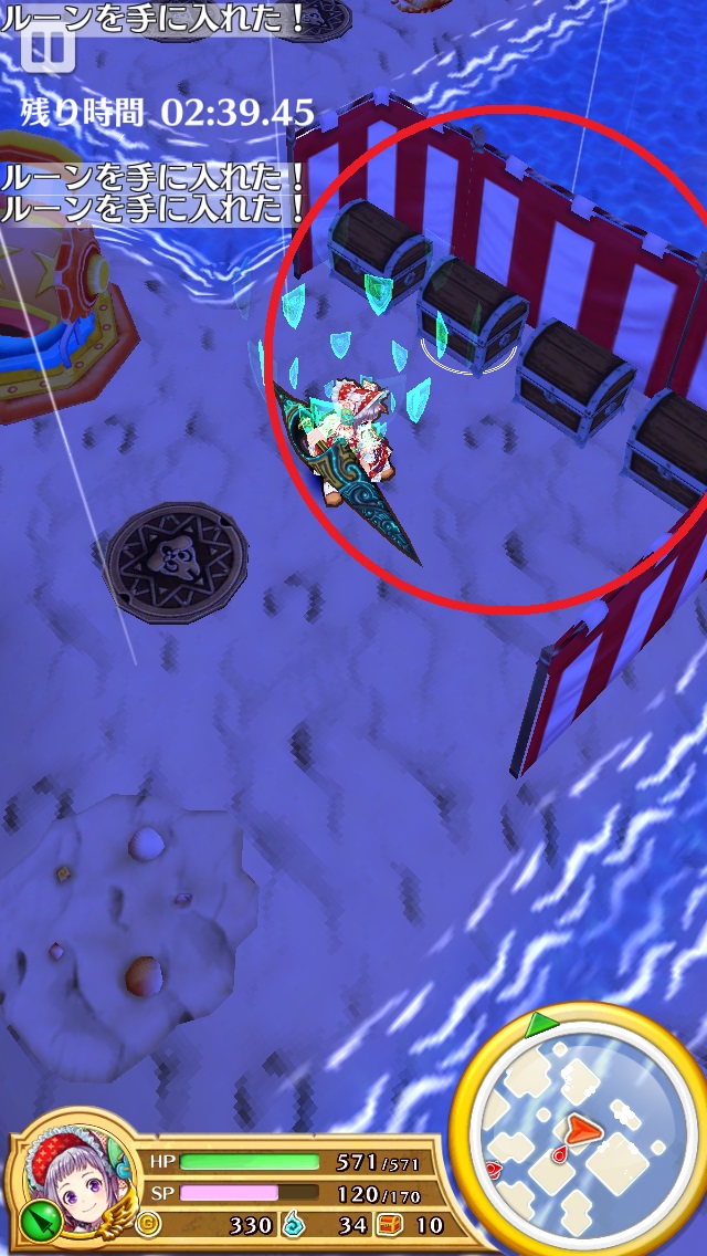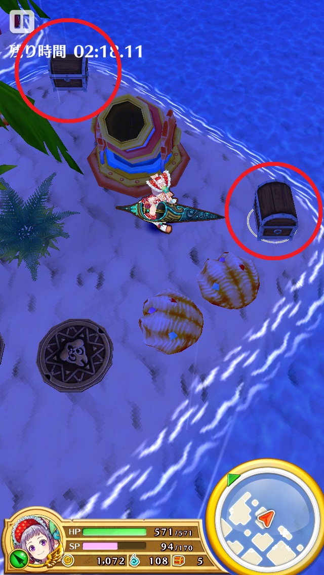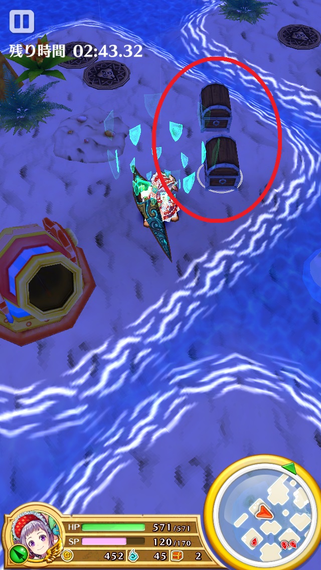 また、スキル2のタップに成功する自信があるなら、"大砲の進み方:5/11"の島の宝箱を外から破壊することも可能だ。
