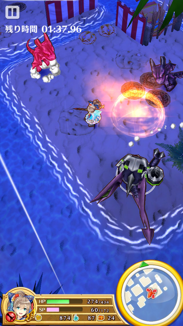 HPを維持できれば、消費SP少なめで持続回復やバリアを使うことができ、攻撃速度も速くなっていくので戦闘が楽。