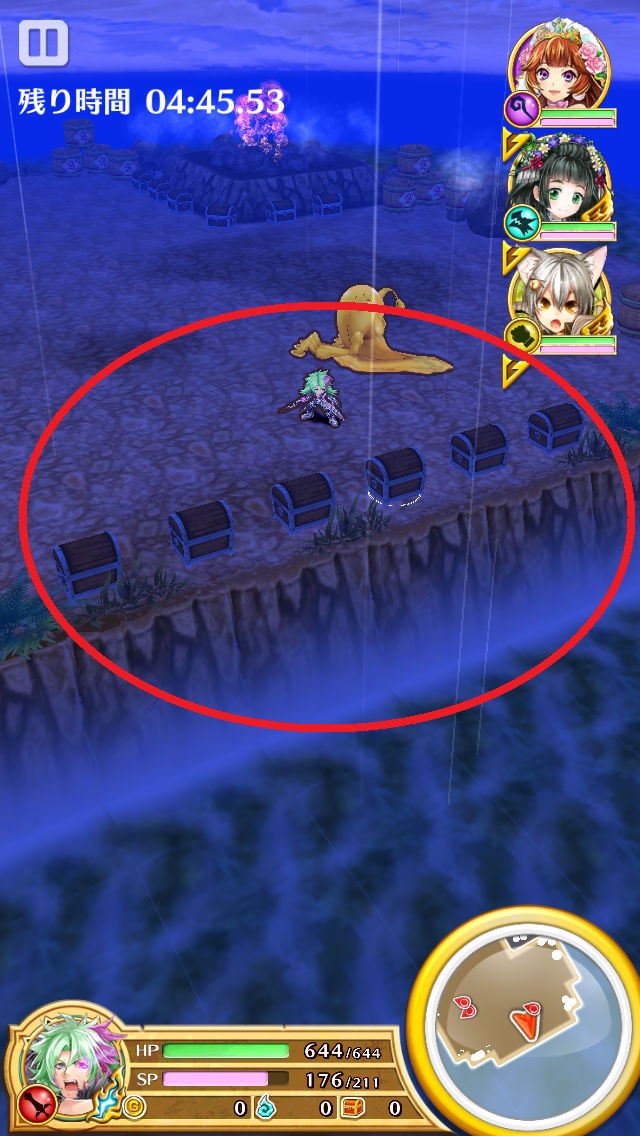 ▲宝箱は、2ヵ所に6個ずつ固まっているので、回収が楽。