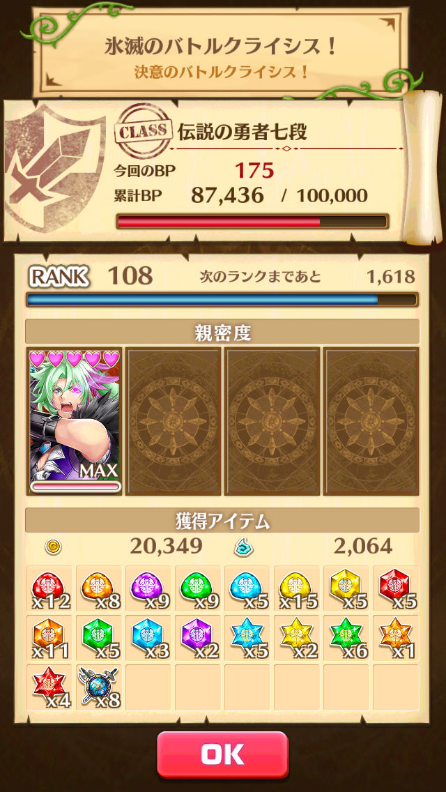 「氷滅のバトルクライシス!」の最高難易度★9「鉄壁のバトルクライシス」「猛攻のバトルクライシス」「決意のバトルクライシス」は全て、マップ・出現する敵・ドロップするアイテムが同じ。