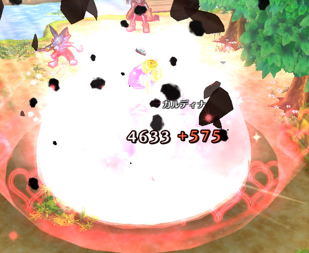 スキル2は、【正面へ斧を投げる】→【多段ヒットするハートを発射】→【頭上から巨大斧が落ちてくる】という流れ。