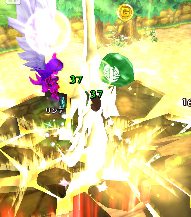 スキル2は、【飛び上がって周囲にダメージ】→【敵に槍が直撃】という流れとなり、エフェクトが派手で非常に神々しい。