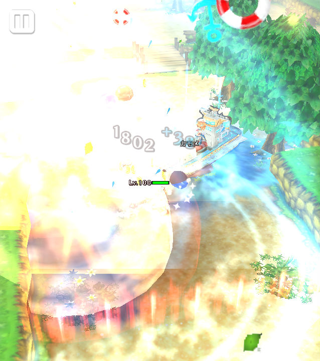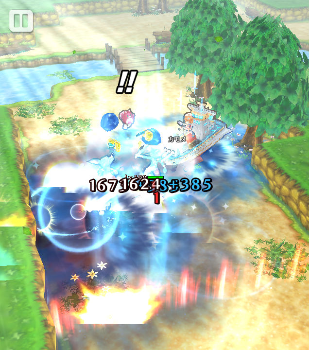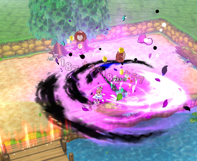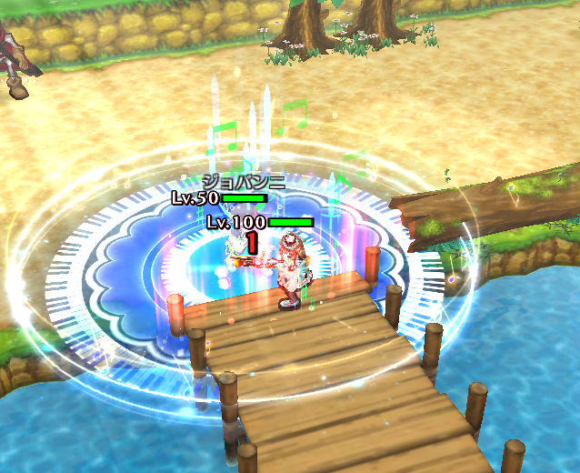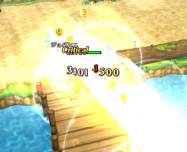 ▲通常攻撃コンボ強化中は、キャラの下に水が出現。