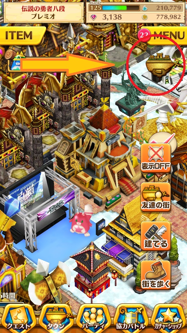 タウンに"表示OFF"のアイコンが登場し、タップすることでUIを非表示にすることが可能に。