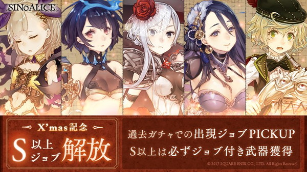 株式会社ポケラボと株式会社スクウェア・エニックスが共同開発したスマートフォン向けバトルファンタジーRPG『SINoALICE(シノアリス)』は、本日2017年12月22日(金)16:00より、「X'mas記念 S以上ジョブ解放ガチャ」正義編&束縛編を開催しました。