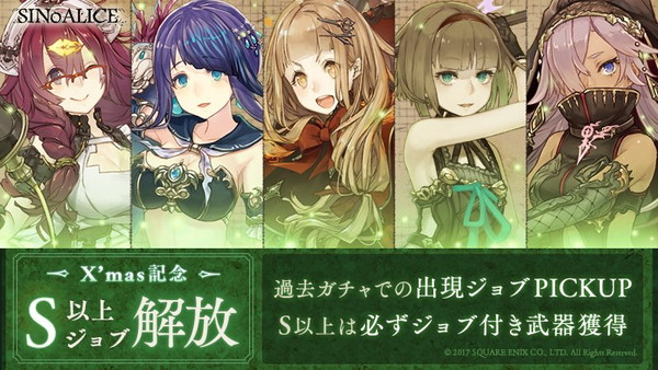 【『虚妄編』『悲哀編』のピックアップ開始】『X'mas記念 S以上ジョブ解放ガチャ』にて『虚妄編』『悲哀編』のピックアップを開始しました!レアリティS以上の排出武器は必ずジョブ解放武器となっています。開催期間が3日間と短いので、このチャンスをお見逃しなく! pic.twitter.com/TDfBX9tQBc— SINoALICE -シノアリス- (@sinoalice_jp) December 25, 2017