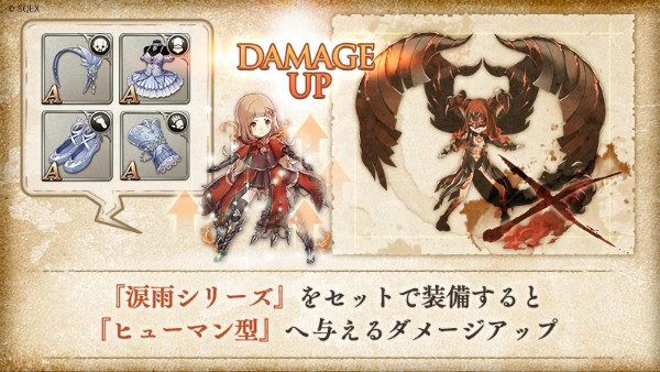 「涙雨シリーズ」防具はセットで装備すると、「ヒューマン型」に与えるダメージが大きくなるセットスキルが発動します。