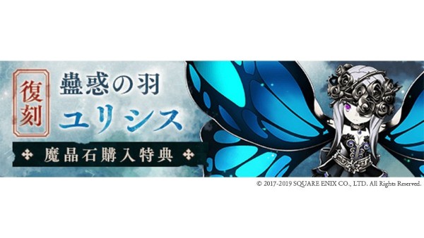 本日2019年1月7日(月)16:00より、SSナイトメア「蠱惑の羽ユリシス」がおまけでついてくる「魔晶石セット」がアイテムショップで販売予定です。