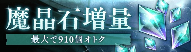2019年1月31日(木)16:00より、「魔晶石増量キャンペーン」が開催中です。期間中、魔晶石を最大910個獲得できるお得な増量商品が販売されています。