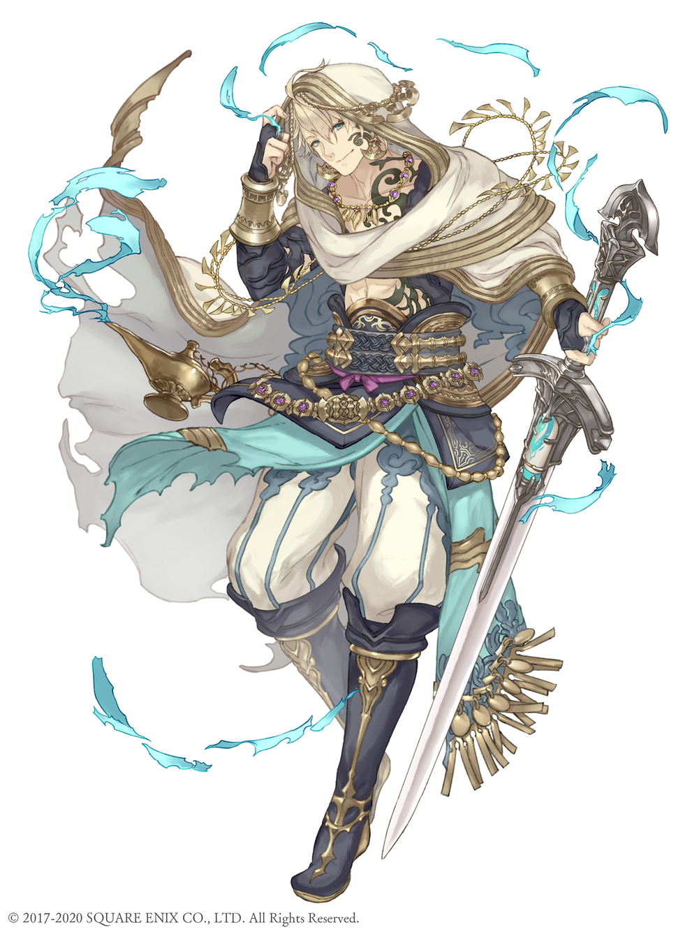 本ガチャには、「アラジン(CV:柿原徹也)」の新ジョブ「アラジン/ブレイカー」が登場しています。「アラジン/ブレイカー」は、SS武器「成金の両刃剣」(刀剣)を獲得すると解放されます。