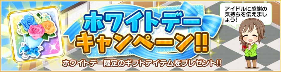 『アイドルマスター シンデレラガールズ スターライトステージ(デレステ)』にて、限定のギフトアイテムが貰えるホワイトデーキャンペーンが開催中です。