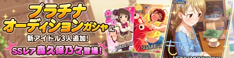 11月22日(火)15:00より、『アイドルマスター シンデレラガールズ スターライトステージ(デレステ)』にて、プラチナオーディションガシャに3人の新アイドルが登場!