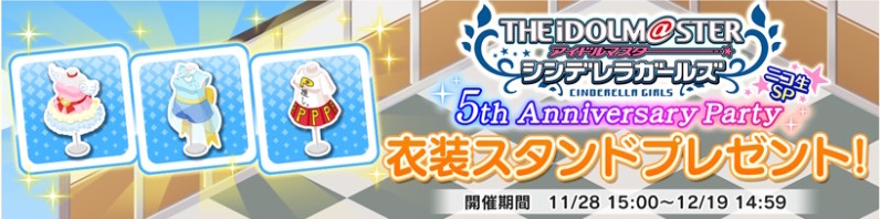 イベント「THE IDOLM@STER CINDERELLA GIRLS 5th Anniversary Party ニコ生SP」にて制作が決定した、ルームアイテムがプレゼントされます。
