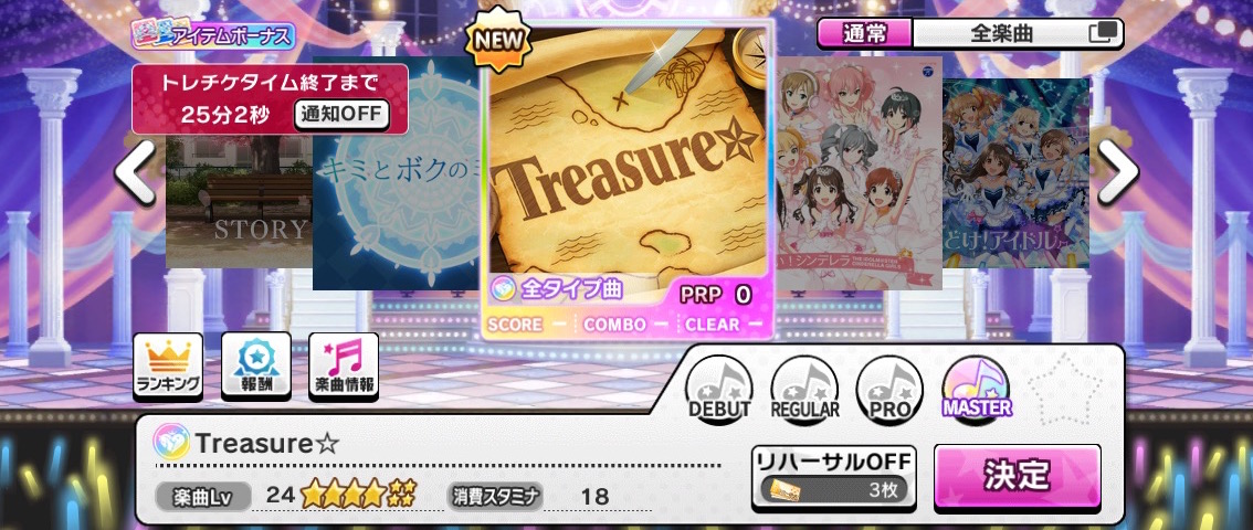 シンデレラガールズのwebラジオ「デレラジ☆」と「CINDERELLA PARTY!」のコラボ曲、「Treasure☆」が通常楽曲として追加されました。