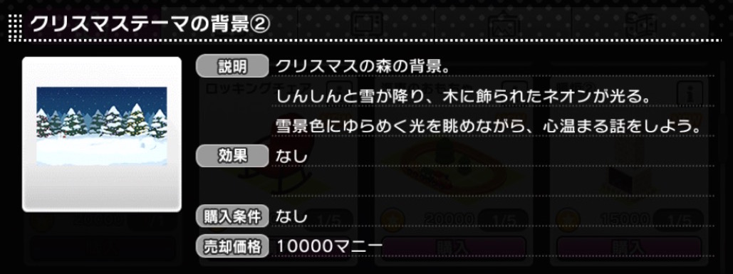 ルーム背景「クリスマステーマの背景②」にアニメーションが追加されました。ルームショップにて12月25日(日)までの期間限定発売となっているので、お見逃しなく!